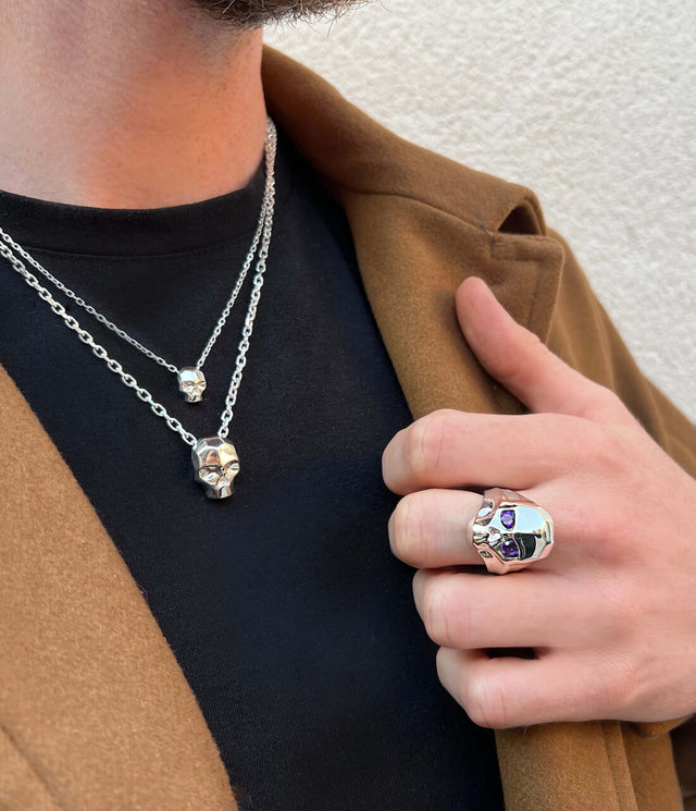 Discover our most iconic collection. We have taken this symbol of rebellion and created beautifully luxurious and wearable skull rings, skull necklaces and more that can be styled for the boardroom, a gig or formal event. Skull jewellery is not only for goths and rockers, show your unique personality and style it your way!