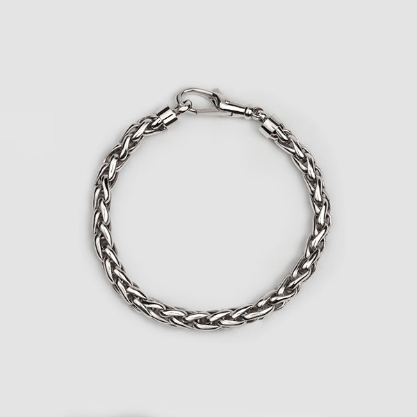 Bespoke bracelet custom made in solid platinum. This was made to replace a much loved bracelet which had been lost. This was entirely handmade which makes it a rather special and very expensive chain, in fact, a bit of a masterpiece. We copied his old bracelet exactly.