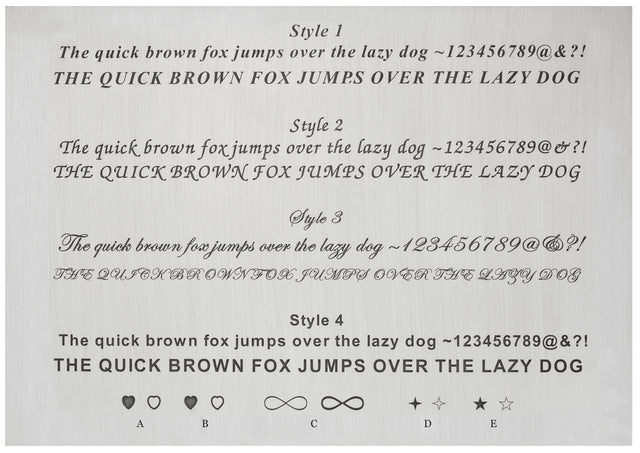If you require anything non-standard, e.g. a symbol, design, logo or even your own handwriting, this is usually possible and is quoted on a case by case basis. Please contact shop@stepheneinhorn.co.uk.
