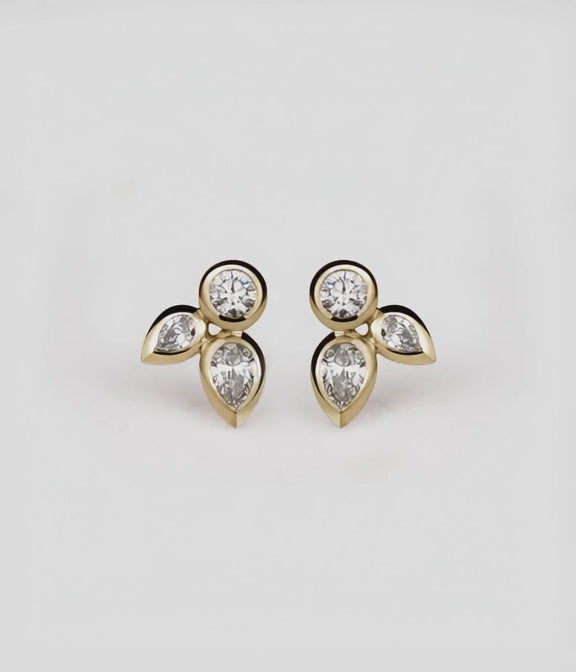 Set with a 3mm round brilliant cut stones & 4x3mm and 3x2mm pear cut diamonds.