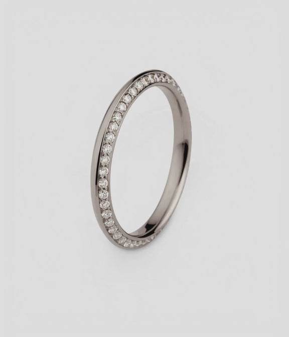 Distinctive and original full eternity ring. A clever little twist on a more conventional eternity ring, this band is pavé on one side with gemstones. It can be worn on its own or beside our Angel engagement ring. Or you can just wear it because you love it and it is a thing of beauty!