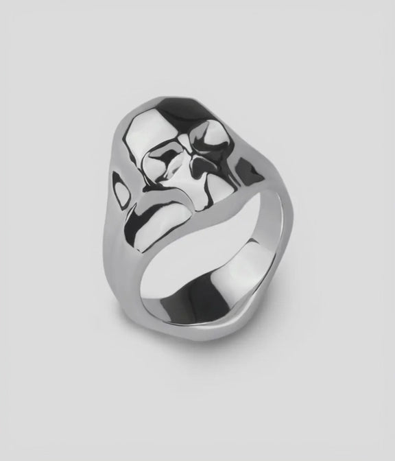 Carved skull ring that screams individuality. This Skull is unusual in its luxuriousness. It also has a beautiful shape which has a slight nod to modernism. We are perfectionists and don't want to churn out rubbish. Thats why our customers come to us, we make incredible pieces to the very highest quality and this ring is no exception.