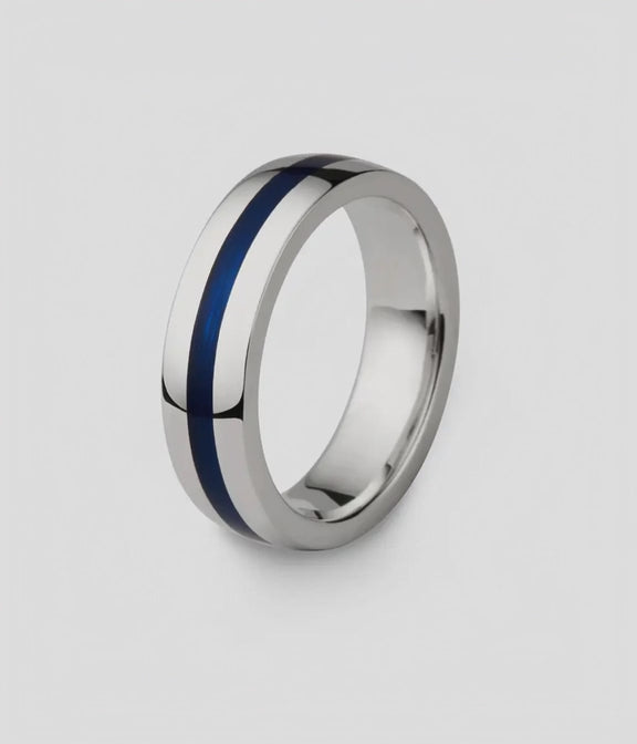 A handsome and sleek ring made with enamel and precious metal. This is one of our most popular designs. More exciting than a simple plain band, this ring is ergonomically designed to feature two materials in one. Express a little bit of you with this special piece!