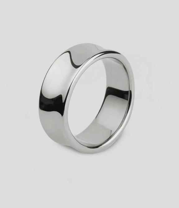 A luxurious and elegant design. Part of our signature Liquid collection, this makes a very opulent wedding or statement ring. It looks great on an index or middle finger but also looks rather debonair when worn on a little finger or thumb. It's the perfect plain wide ring with a twist.