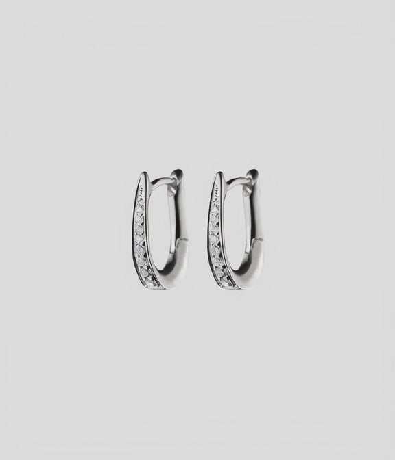 Girl is wearing a platinum diamond hoop earring.