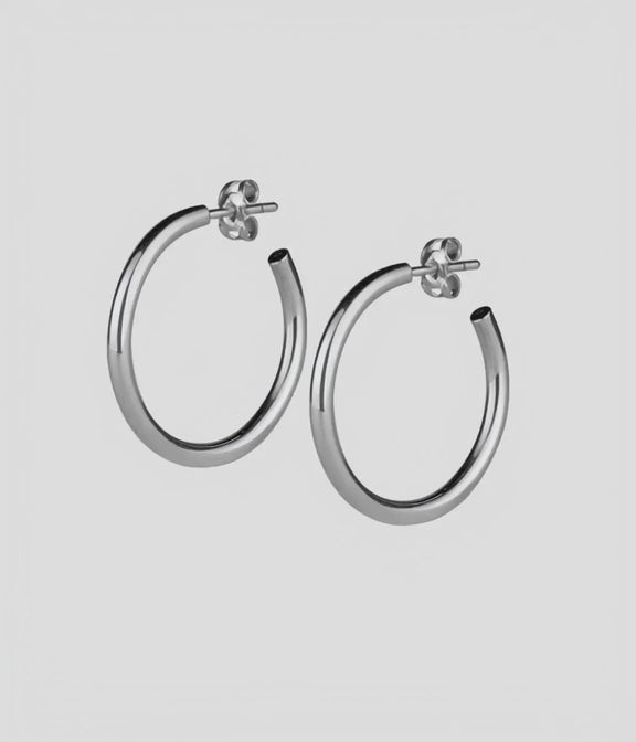 A very timeless and easy to wear pair of earrings. An ideal gift. A good pair of hoops is an essential part of any jewellery collection. We also have these in large and small sizes. These can be made in a variety of solid recycled precious metal options including sterling silver, yellow gold, white gold and rose gold.