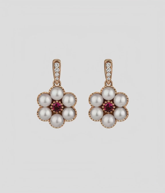 They are delicate, elegant and very classic and have a precious stone set in the back of the scalloped flower setting- a wonderful detail that is visible on the back. The pearls used in these earrings are Akoya pearls.