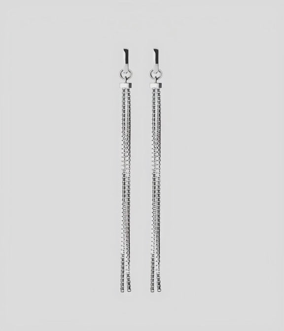 These stunning long chain earrings feature a sleek hoop design, cascading into delicate, shimmering chains that dance with every movement. Perfect for adding a touch of sophistication to any outfit, the Shimmer Redux Hoops are the ideal accessory for both casual and formal occasions. Crafted with meticulous attention to detail, they offer a modern twist on classic hoop earrings, ensuring you stand out with effortless style.