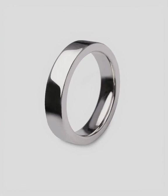 A lustrous plain band that is sleek and elegant. This simple design has more to it than meets the eye. It has a very flat surface but then curves inwards making it look modern and sleek. It has an internal comfort fit . Great choice as an everyday ring with a difference.